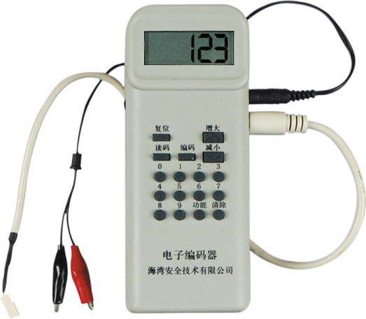 與探測器、模塊的總線端子相連,操作 ,開機后按下讀碼鍵,液晶屏上將顯示地址編碼。輸入探測器或模塊的地址編碼(1-242),按下“編碼”鍵進行編碼。若編碼成功,屏幕顯示下一個地址碼,此時,直接按下“編碼”鍵,可直接編入下一個地址碼。