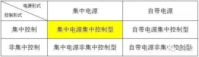 消防應急照明和疏散指示系統(tǒng)按控制形式分為集中控制和非集中控制,應急電源的實現(xiàn)方式有集中電源和非集中電源。所以就有4類系統(tǒng)形式: