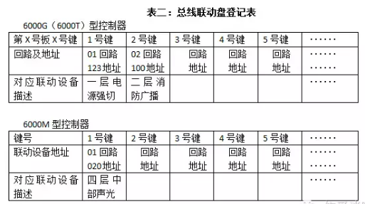 4.如果有多塊總線(xiàn)聯(lián)動(dòng)盤(pán),也如上填寫(xiě),寫(xiě)明第幾塊,需通過(guò)聯(lián)動(dòng)鍵盤(pán)聯(lián)動(dòng)控制的全部寫(xiě)全,見(jiàn)表二。