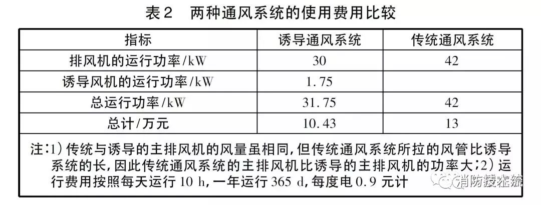 由于正常情況下只有通風系統使用,所以日常運行費用分析只考慮通風的費用,兩種通風系統運行費用比較見表2。