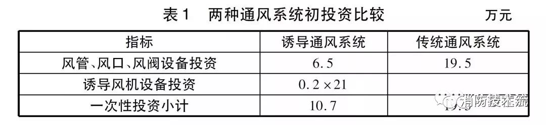 該車庫兩種通風系統一次性投資情況見表1。