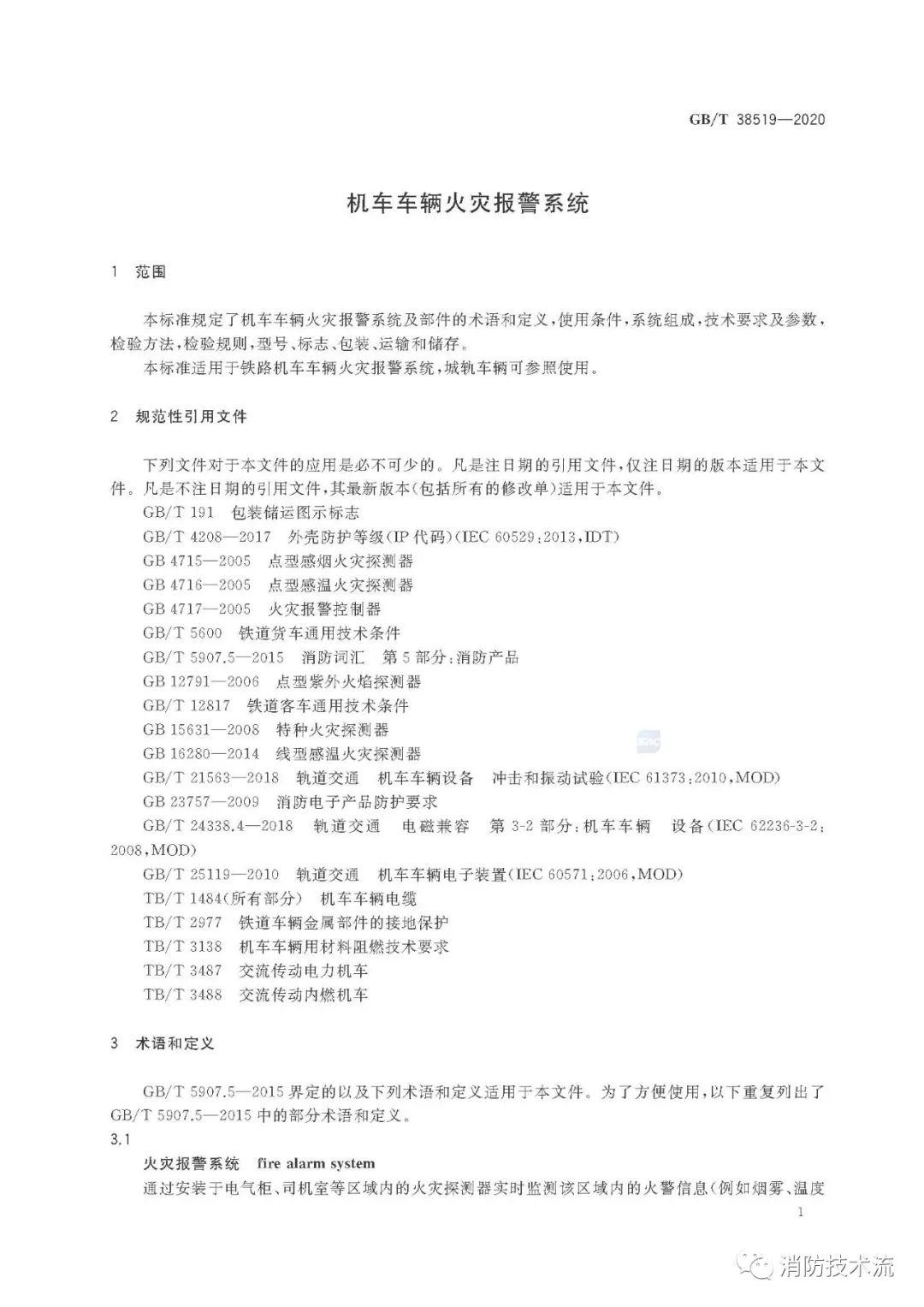本標準適用于鐵路機車車輛火災報警系統,城軌車輛可參照使用 。