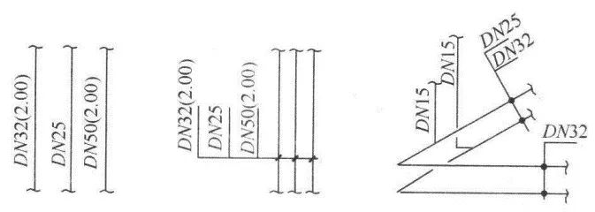 多條管線的規格標注方法: