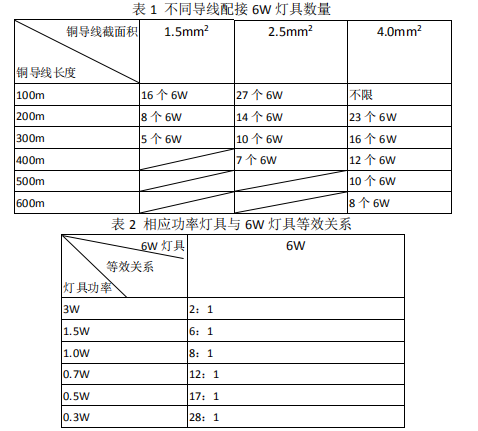的 ZRRVS 線,各種分配電裝置每個支路線路長度和配接燈具數量應滿足下表要求。