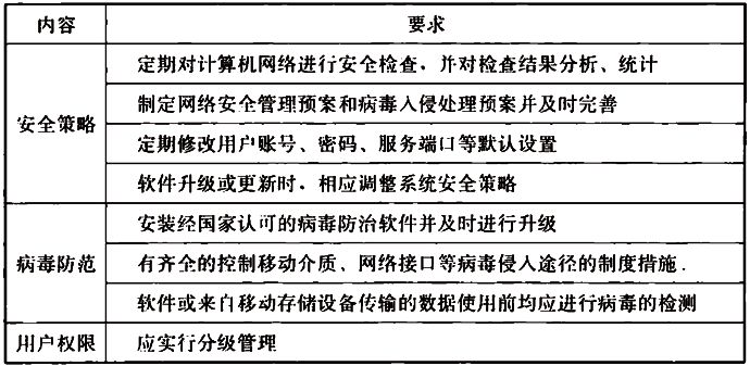 (3)信息系統及其設備應具備防病毒和防網絡入侵措施,其內容及要求應符合下表的規定;信息系統中涉及的安全路由器、防火墻等應通過國家信息安全測評認證機構的認證;